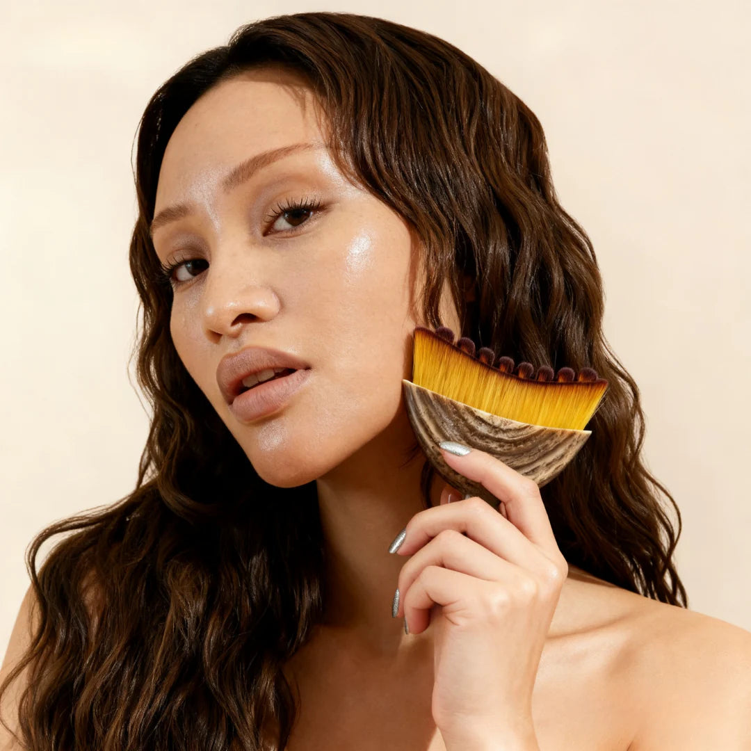 Inspirado en tratamientos clínicos avanzados, nuestra Brocha de Drenaje Linfático trabaja en armonía con tu piel para mover suavemente el líquido retenido que genera la apariencia de hinchazón en cara y cuello.