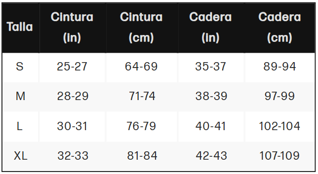Nota: Si estás entre dos tallas, te recomendamos elegir la más pequeña para un mejor ajuste y comodidad.